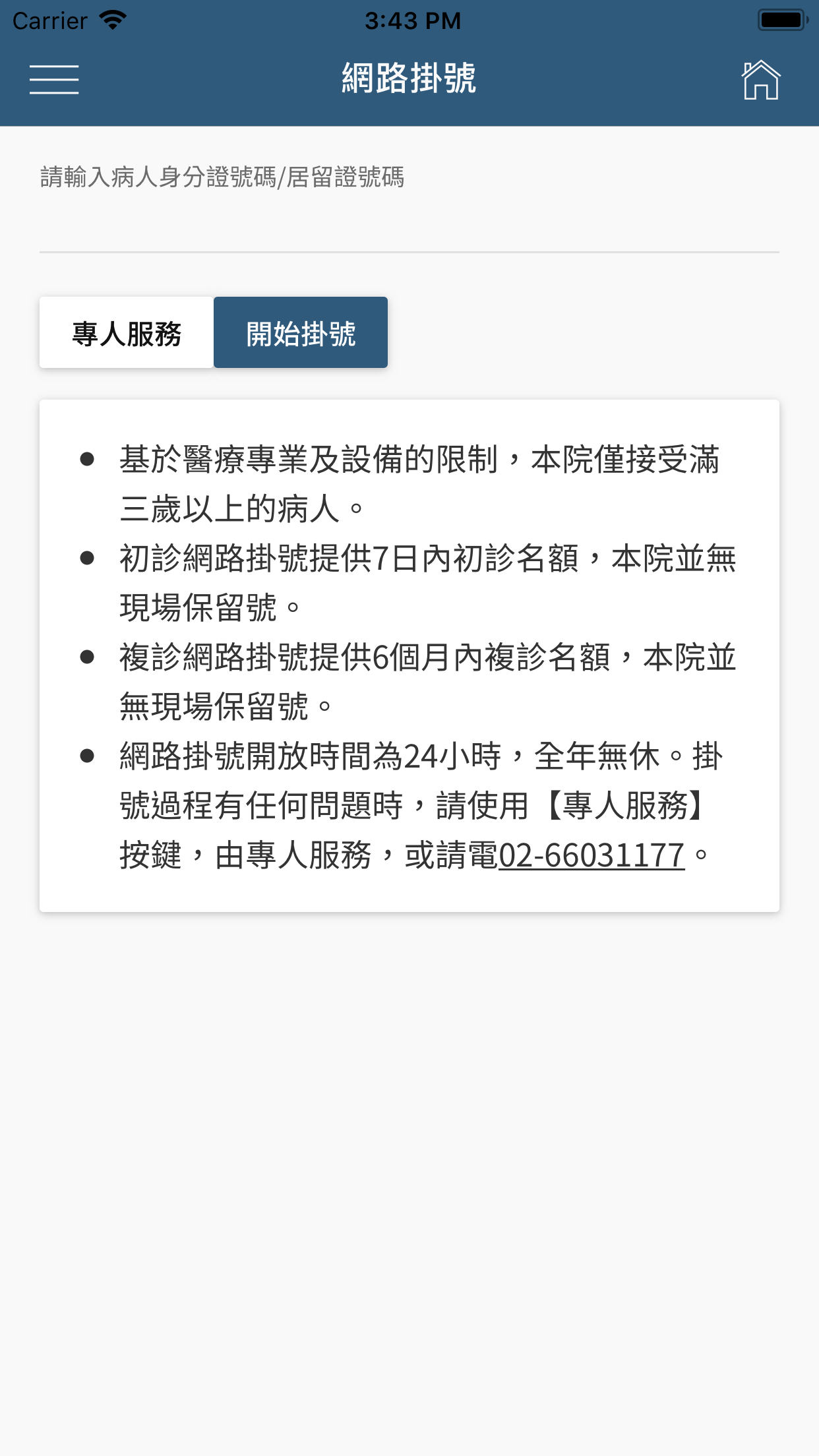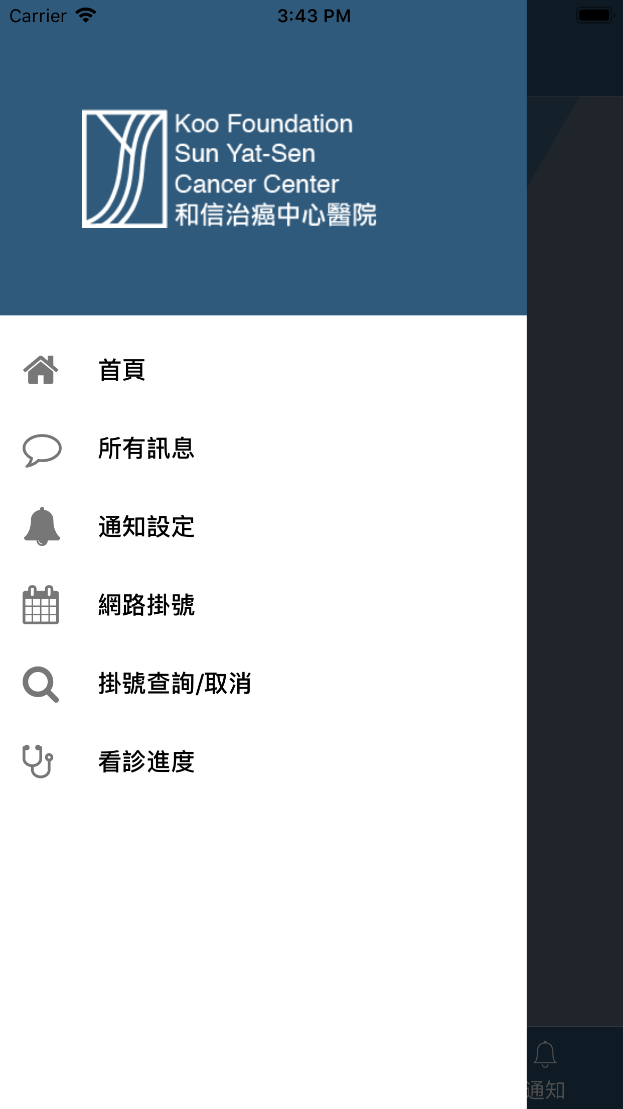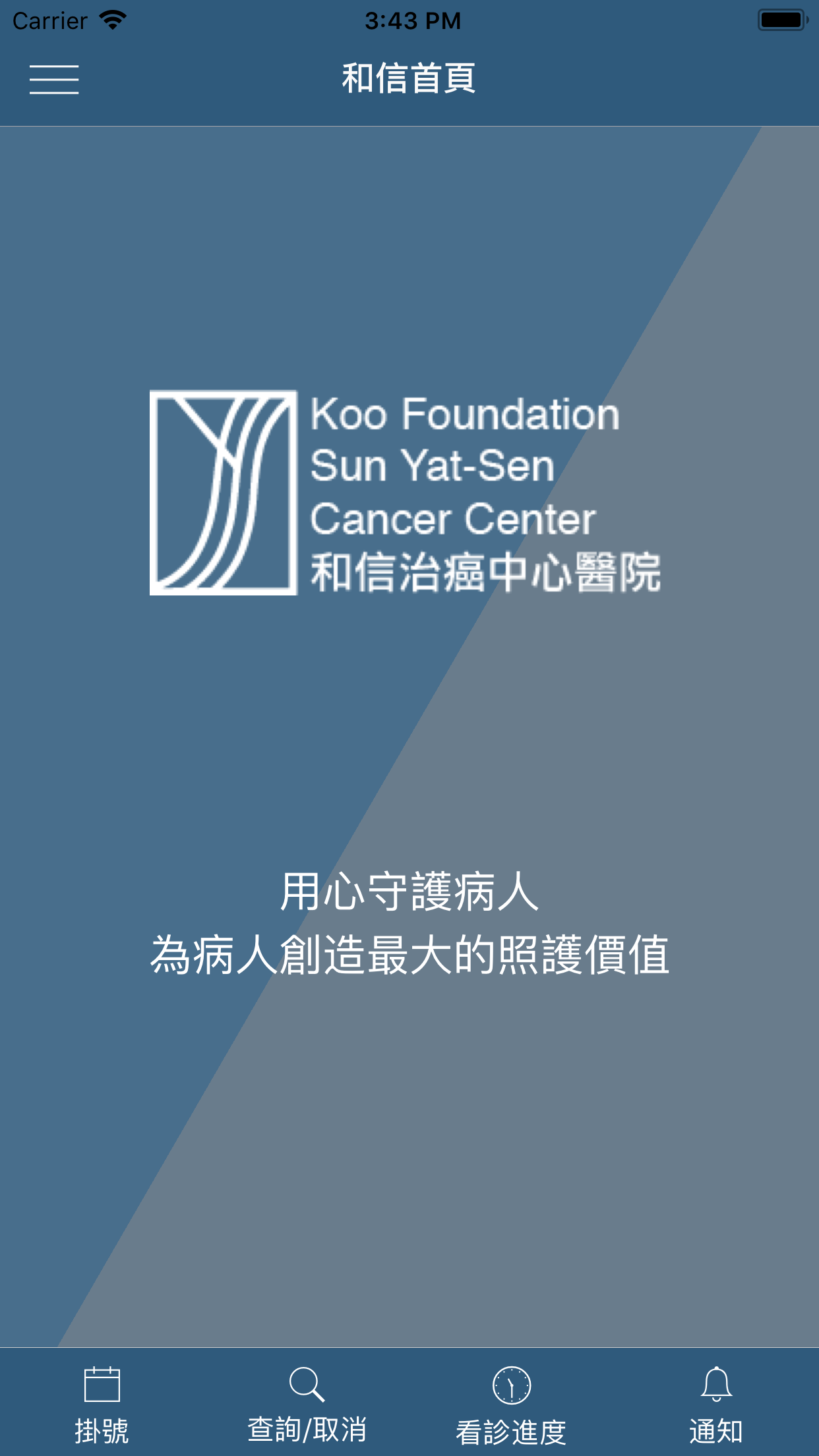 和信醫院行動服務APP,提供網路掛號、掛號查詢/取消與看診進度查詢。亦可依個人需求設定預約相關之推播提醒。