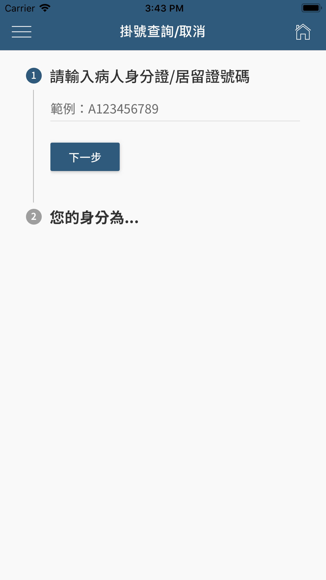 2. 查詢/取消: 可用身分證字號或病歷號碼及出生日期,查詢取消門診掛號。